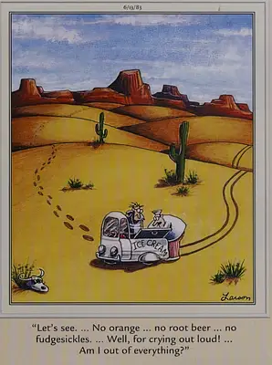 Tato Klasika Fjern siden Komedie Tropo di Gary Larson har tidligere gått tapt i ørkenen. Og den minste bruken av isblader kombinerer uventet ørken og dessert. I denne tegneserien for alle 。 ''