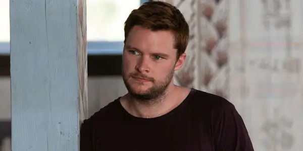 Jack Reynor lener seg mot en vegg og lytter i Midsommar