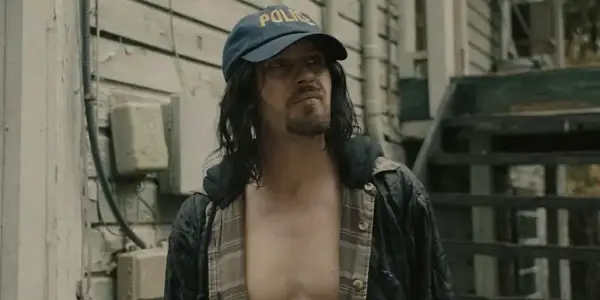 Eli Phillips spilt av Michael Pitt iført politihatt i reptil