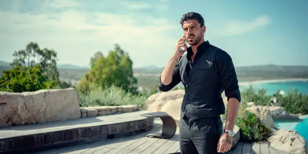 | Michele Morrone | Dante Versano | Massimo (Michele Morrone) svarer på en telefon på bassengdekket om 365 dager: neste dag. |