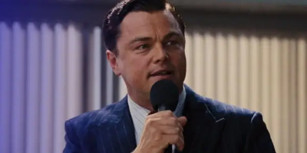 Jordan Belfort holder en mikrofon i Wolf of Wall Street